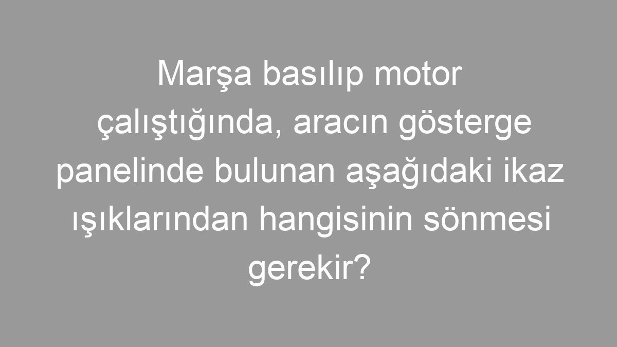 Seçenekler Marşa basılıp motor çalıştığında, aracın gösterge panelinde bulunan aşağıdaki ikaz ışıklarından hangisinin sönmesi gerekir?